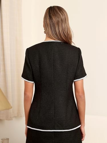 M.Infisavo Tweed Blazer Jackets for Women 2025 Spring Summer Elegant Short Sleeves Button Office Outfit with Braid Trim 6