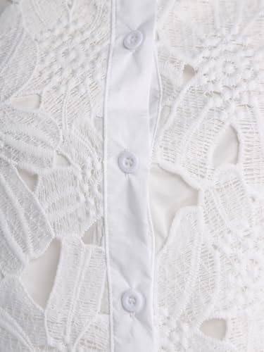 • The solid-color tops with a lapel and short-sleeve design showcase a new-age and chic look, and the floral hollow-out element adds a touch of femininity and elegance
