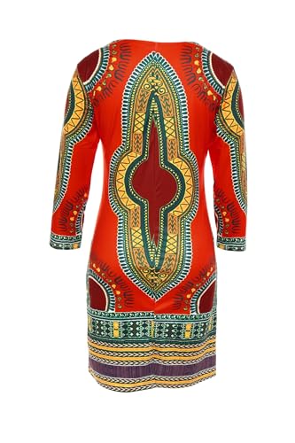 Women Bohemian V Neck African Printed Ethnic Style Summer Bodycon Shift Dress