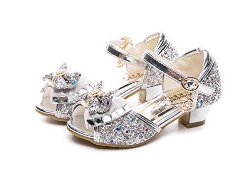 Kid Girls Glitter Wedding Sandals Sequin Party Bridesmaids Princess Crystal High Heels Shoes 1