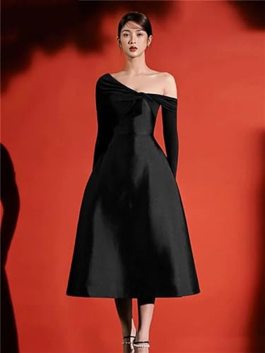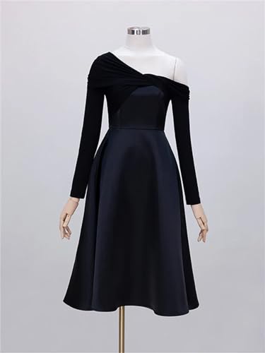 More information about Women Spring Party Dress Cross Diagonal Collar Patchwork Asymmetric High Waist Elegant Dresses