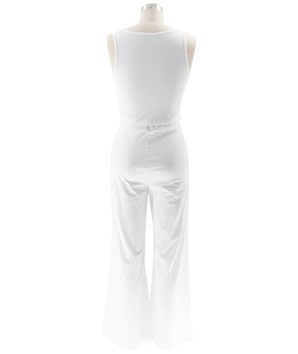 Ekaliy Women's 2 Piece Outfit Sexy Crop Tank Top and High Split Wide Leg Pants Sets Elegant Going Out Suit 2