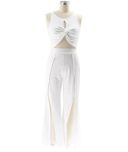popular ! Ekaliy Women's 2 Piece Outfit Sexy Crop Tank Top and High Split Wide Leg Pants Sets Elegant Going Out Suit