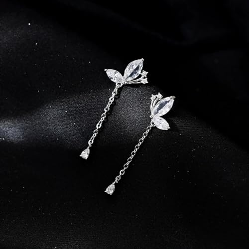 • MATERIAL: Except for cubic zirconia, entire other metal of these butterfly drop earrings is made of genuine 925 Sterling Silver, including earrings posts and the whole earrings. These sterling silver earrings are electroplated with genuine Rhodium/18K Gold/Rose Gold, which is Hypoallergenic, Lead-complimentary, Nickel-free, Cadmium-free and don't turn your skin green