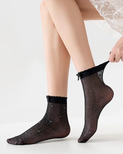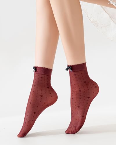 Mcool Mary Women's Sheer Ruffle Socks,Nylon Ankle Socks for Women,Ultra Thin,Cute Multicolor Cool Heart Dots Tulle Sock 5 Pack 4