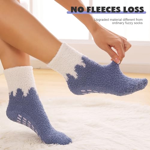 6 Pairs Womens Fuzzy Socks with Grips Non Slip Slipper Fluffy Socks Gifts for Women (6 pairs/color #5) 6