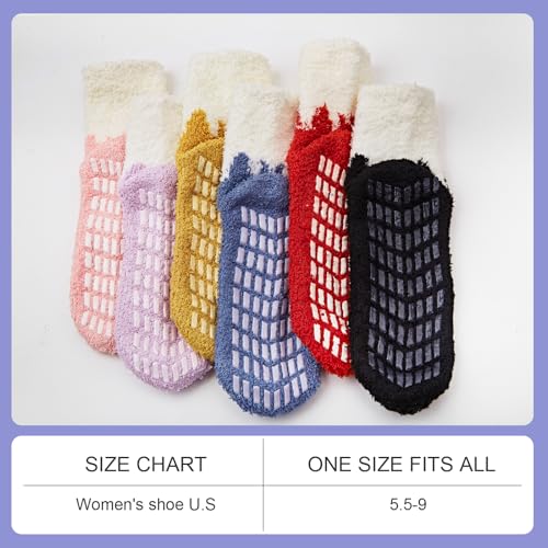 popular ! 6 Pairs Womens Fuzzy Socks with Grips Non Slip Slipper Fluffy Socks Gifts for Women (6 pairs/color #5)