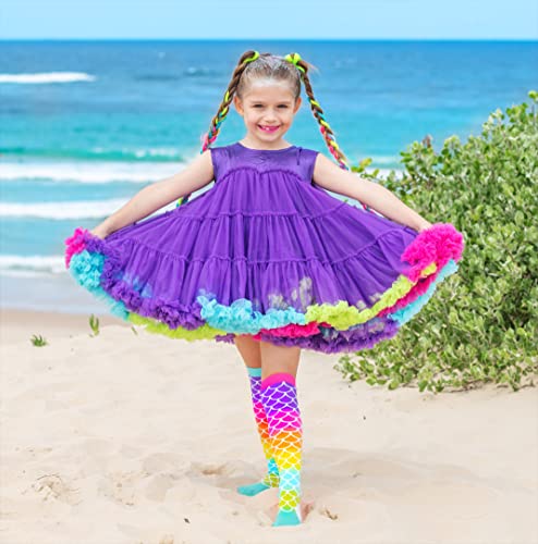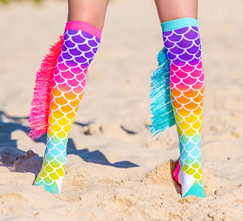 Mermaid Socks, Dazzling Knee-High Socks with Blue & Pink Tassles