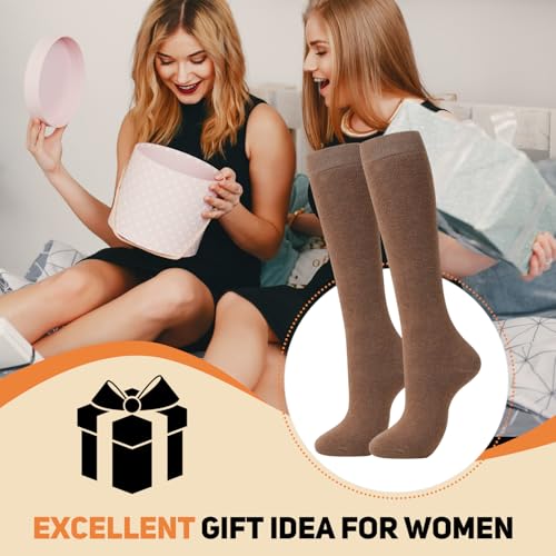 4 Pairs Warm Knee High Socks for Women,Cotton Thermal Sock for Skiing Hiking Gifts Winter Boot Socks 4
