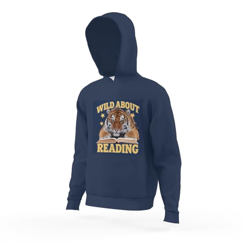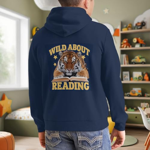 popular ! Kids Retro Wild About Reading Tiger Boys Girls Lightweight Kangaroo Pocket Fleece Hoodies