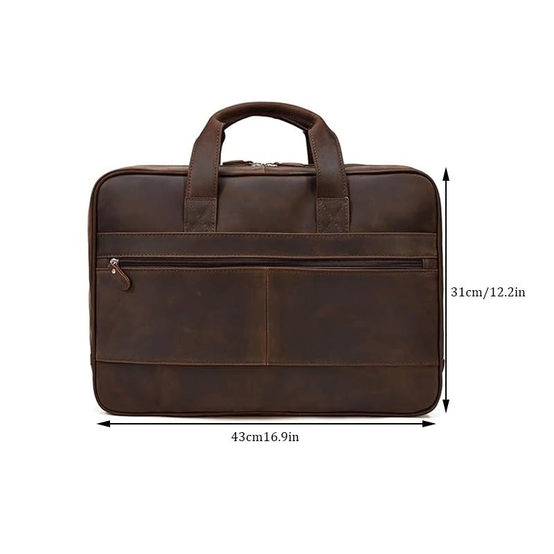 Design: the integrated luggage strap on the adds a layer of convenience to your travel experience - Attach it to your luggage's handle for a hands-free journeyMaterial: genuine leather material, detachable hardware hook bag, detachable hardware hook, bag corner design is upright and full, highlighting the overall shape designReinforced handheld design with craftsmanship, snug hand feel, and good load-bearing capacity Paired with a comfortable handheld for a better experienceWith a generous storage capacity,messenger laptop case doesn't just stop at safeguarding your laptop. Its spacious main compartment and various smaller pockets easily house and organize your essential items and accessoriesVersatile Usage: the adjustable and removeable satchel strap, can be used as a messenger bag. Whatever your preference and needs, this bag can easily be tailored to your preferred Perfect for everyday use. first-class materials and excellent craftsmanship ensure long-lasting durability.