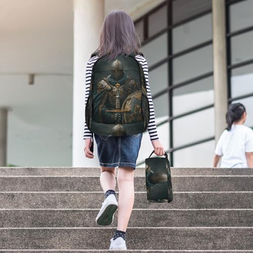 Backpack Knight Full Armor Book Bag Daypack Shoulder Bag Lightweight Back Pack with Lunch Box Travel Laptop Daypack 18.5 x 11.8 In 1