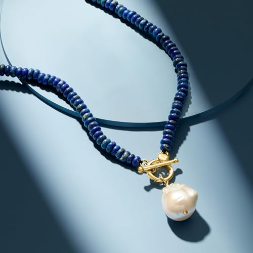 popular ! Ross-Simons 13-15mm Cultured Baroque Pearl and 4.5-5mm Lapis Bead Toggle Necklace in 18kt Gold Over Sterling