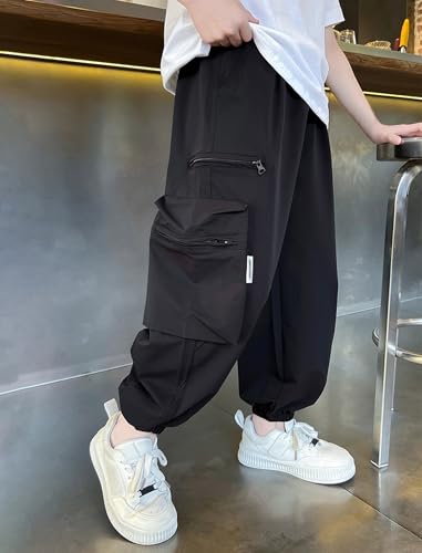 popular ! Boys Cargo Pants Multi Pocket Zipper Pocket Casual Techwear Joggers 5-12 Years