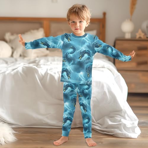 Pajama Sets Long Sleeve Blue Dragons in Stormy Skies Soft Comfy Sleepwear 2 Piece PJS 3-8T 2