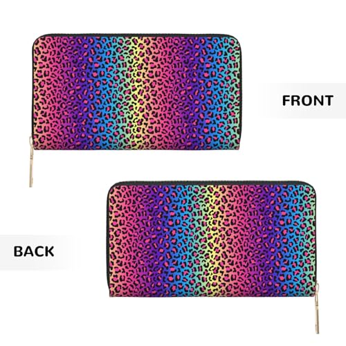 Wallet Women - Leopard Neon Rainbow Print Leather Wallet Large Capacity Bifold Long Ladies Wallets With Zipper