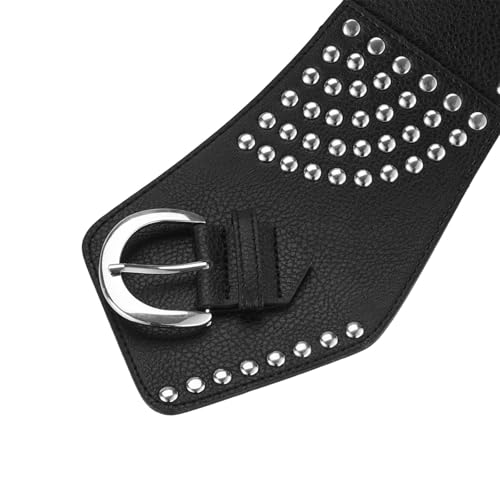 More information about Wide Studded Belt for Women, Faux Leather, Punk Style Waist Accessory (Black, Brown, Beige)