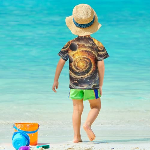 Boy Swimsuit Galaxy Tornado Ring Planet Sunscreen T-Shirts Swimwear Sets UPF 50+ 5