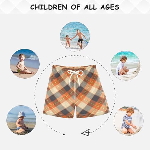 Orange Square Plaid Boys Swim Trunks for 2-12 Years Swim Beach Shorts Kids Swimwear Board Shorts Swimming Essentials