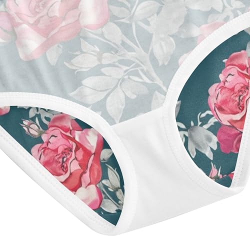 Cotton Girls Underwear Toddler Pink Roses Gray Leaves Dark Teal Little Girl Panties Aesthetic Undies Kids Briefs 2t