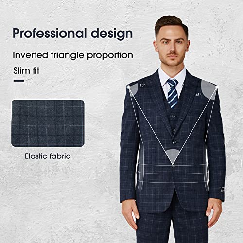 Antonio Uomo Men’s Plaid Suit Set – Slim Fit 3 Piece Blazer Jacket Vest Pants Formal Business Wedding Party Prom Dress Suits 3