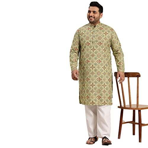Why Choose Sojanya Plus (Since1958) Men's Cotton Linen Yellow and Multi Printed Kurta and White Pyjama Set?
