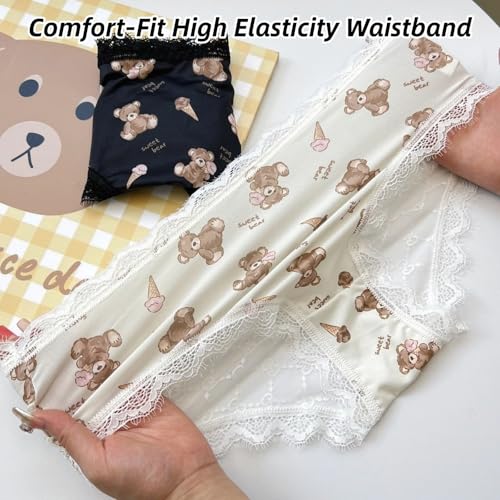 Cute Bear-printed Panties for Teen Girls Age 14-18,Lace Frilly Trim Underwear,Mid Rise Waist,Cotton Crotch,2 Pack 5