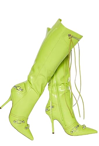 - Knee High Boots for Women Fashion Side Zipper Pointed Toe Stiletto Studded High Heel Rivets Tassel Boots .