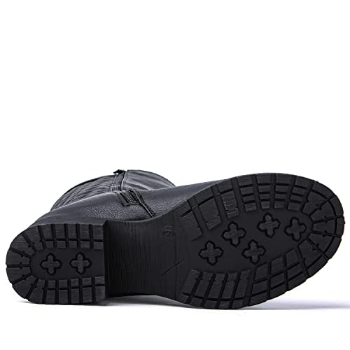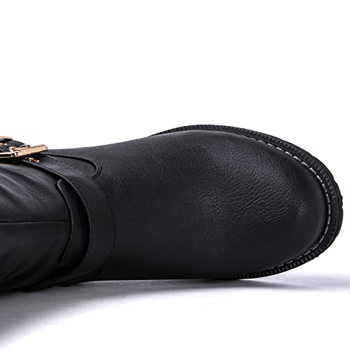 Sole material: ManmadeShaft circumference: 16 InchesOuter material: Faux LeatherClosure type: ZipQuality Craftsmanship: Made With Attention To Detail And Premium Synthetic Materials, These Dress Boots With Low Heel Offer Durability, Comfort, And Timeless Style For Every Season.Versatile Style: These Women's Knee High Fashion Boots Effortlessly Transition From The Freshness Of Spring To The Crispness Of Fall And The Chill Of Winter. Pair Them With Floral Dresses, Skirts, Or Denim For A Chic And Stylish Springtime Look. Or Style Them With Cozy Sweaters, Jeans, And Scarves For A Classic Fall Ensemble.Comfortable 1-Inch Heel: These Tall Boots For Women Offer All-Day Comfort With A Modest 1-Inch Heel, Perfect For Navigating Various Terrains And Activities Throughout The Seasons.Zipper Closure: These Long Boots Are As Practical As They Are Stylish. With A Convenient Zipper On The Side, Slipping Into And Out Of Them Is A Breeze.Eye Catching Equestrian-Inspired Design: Two Decorative Belts With Gold Buckles Around The Ankle Add Sophistication And A Touch Of Vintage Charm To Your Outfit. Whether You're Hitting The Streets Or Attending A Social Event, These Boots Make A Bold Statement And Elevate Any Ensemble. Perfect for everyday use. High quality materials and excellent craftsmanship ensure long-lasting durability.