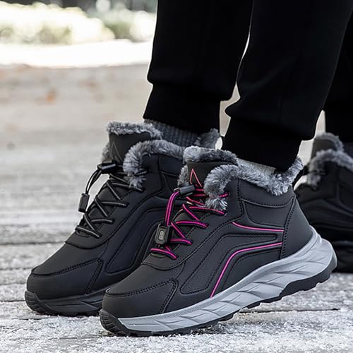 Fabric type: 100% PU-Women's Snow SneakersOrigin: ImportedOuter material: PU-Women's BootsWater resistance level: Waterproof【Waterproof vamp】: Designed with waterproof fabric upper, these mid-calf boots will help you against any wet, slushy and snowy conditions, keeping your feet dry and cushy when you move freely. Premium waterproof upper keeps feet dry and comfortable in rain, snow, or slushy conditions.【Womens Snow Boots Waterproof Insulated】: The waterproof and breathable upper fabric of these winter boots keeps your feet dry in winter, and the lightweight rubber sole provides great traction in wet, snowy conditions.Keep feet warm and dry in snowy conditions with our women's men's waterproof snow boots. The sealed seams and moisture-resistant outer shell block slush and rain, while the fur-lined interior locks in heat for all-day comfort during winter adventures.【Comfort&Warmth】: Womens snow boots fully lined from the outsole to the insole,cover your feet with warmth all day,to wrap your feet in warmth like a toasty quilt and offer cozy and toasty experience on your feet.The interior is fully lined with plush faux fur for serious warmth, added to the fluffy cushioned footbed keeping your feet comfortable and warm in the cold winter weather.【Non-slip Durable Sole】: The non -slip rubber soles of winter boots for women can enhance the traction and grip of the shoes. They can keep you walking steadily, so you don't have to worry about slipping when walking in the snow.【Versatile and Reliable】: These women's boots are so comfortable that you can wear them both indoors and outdoors while walking, shopping, partying and more, keeping you warm and energized all winter long. From outdoor excursions to indoor gatherings, these winter booties are your go-to footwear choice. Experience the perfect blend of fashion and function, and make a statement wherever you go this winter. Perfect for everyday use. excellent materials and excellent craftsmanship ensure long-lasting durability.