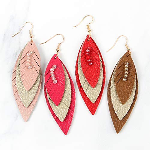 More information about Bohemian Genuine Suede Real Leather Geometric Drop Earrings - Lightweight Hook Dangles Feather, Leaf, Multi Color Fringe, Triple Tassel