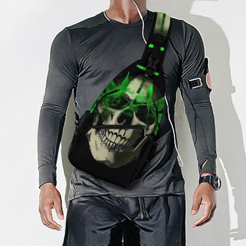 Womens Sling Bag with Adjustable Strap, Cute Skull Weed Leaf Leaves Green Black Reusable Lightweight Crossbody Bag, Versatile Chest Bags for Travel, Party 7