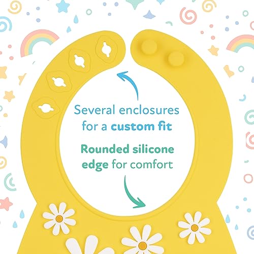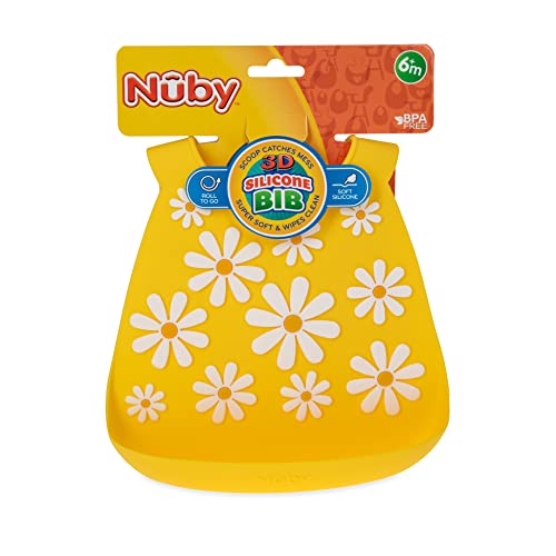 Color: DaisyBrand: NubyClosure Type: Hook and EyePattern: DaisyProduct Care Instructions: Clean before initial use and after each subsequent use. Wipe clean with a damp cloth and mild soap. Hang to dry. Do not machine wash, dry, or iron. Do not clean with harsh chemicals or solvents. See more100% SiliconeMade in the USA or ImportedBABY BIB FOR 6+ MONTHS: Our Nuby silicone baby and toddler bib has a front scoop pocket to give an extra hand in catching baby food messesSUPER SOFT SILICONE BIB: This scoop bib is made of 100% soft silicone to protect baby clothes against spills and crumbs; After meals, the waterproof bib simply wipes clean with a damp cloth and soapCUTE BIB DESIGN: Cute 3D flowers pop off this bright yellow silicone bib; Perfect bib for baby girl or bib for baby boyEASY TO ADJUST AND FASTENS SECURELY: Double tab closure ensures the bib fastens securely and provides an adjustable, plush fit; The rolls up for easy storage during travelSAFETY FIRST: Parents can feel safe knowing Nuby baby essentials are developed, researched, and manufactured to exceed all government safety regulations and standardsBABY REGISTRY MUST HAVES: Nuby offers baby items and other products for baby feeding, baby led weaning, soothing, playtime, bathtime, and nursery, boasting patented innovation in all of its categories; Perfect baby shower gift Perfect for everyday use. top-grade materials and excellent craftsmanship ensure long-lasting durability.