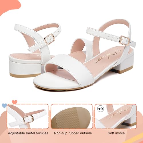 Athlefit Girls Sandals Open Toe Ankle Strap Low Heels Girl Dress Shoes For Toddler Little Big Kid