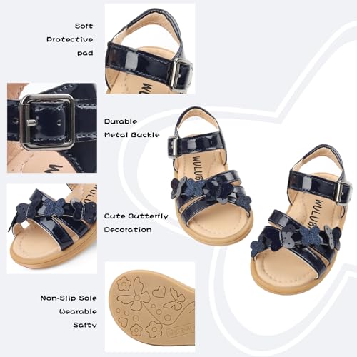 Origin: ImportedSole material: LeatherOuter material: Polyurethane (PU)Closure type: Hook & LoopComfort: Our Toddler Sandals made with quality PU leather, soft against the skin, and featuring multi-strap designs for breathability to keep baby cool. The toddler sandals girl non-slip rubber sole provides steady footing for babies learning to stand or walkSecure Metal Buckle: These Toddler Girl Sandals Features a sturdy metal buckle connected to an elastic band. This keeps the sandal on during activity without being tight, perfect for new born, infants, toddlersStylish & Versatile: These toddler dress shoes pair easily as toddler dress shoes. Ideal for everyday wear, indoor/outdoor play, dresses, beach, pool, and summer parties. Adds a fashionable touch to baby's look for baby showers and birthdaysAdorable Design: Baby sandals multiple straps on the upper feature cute flower/butterfly details. The sole has charming patterns for added grip and visual appeal. Your baby will look adorable and receive many complimentsSize Tip: Though we provide general size suggestions, please measure your child's foot length and refer to our size chart for the best fit. Size 3=4.3inch, Size 4=4.6inch, Size 5=5inch, Size 6=5.3inch Perfect for everyday use. top-grade materials and excellent craftsmanship ensure long-lasting durability.