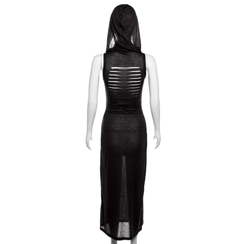 Women's Gothic Sleeveless Hooded Dress Y2K Side Split Hollow Out Midi Dress Bodycon Cocktail Party Club Dresses 4