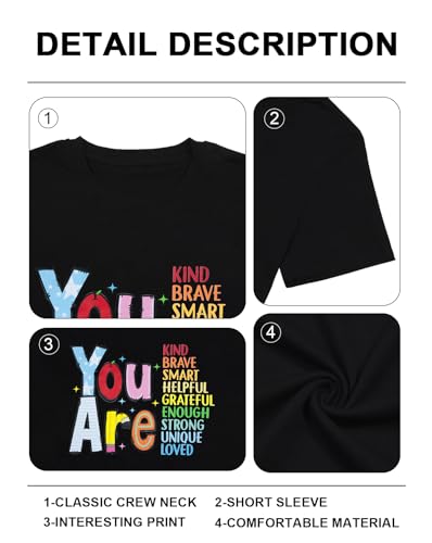 • Features: Funny you are kind brave smart letter printed tee top with short sleeve, crewneck, casual style, featuring a plain and a thick fabrication. Cute teacher life t shirts is good for first, second, third, fourth, fifth, sixth grade, prek, kindergarten teachers.