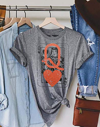 • ★Package included:1 * Womens Q of Hearts Playing Card T-Shirt Funny Vintage Graphic Tees Tops