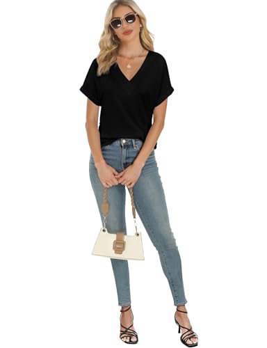 Womens Summer V-Neck Tees 2025- Lightweight Short Sleeve Tops with velvety Stretch | Trendy Casual T-Shirts for Spring & Summer