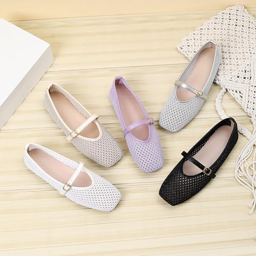 Women's Flat Square Toe Mesh Mary Jane Shoes Ladies Ballet Flats Comfortable 2025 Knit Loafers for Dressy Office 5