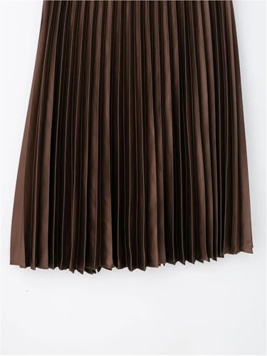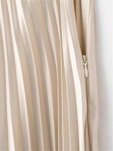 Satin Skirt Women's Spring Collection Elastic Waist A-line Pleated Skirt Silk Satin Texture MIDI Pleated Skirt 6