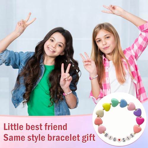 • Premium Sister Bracelet Set: This handcrafted big little sister bracelet features genuine 14k gold beads, rainbow acrylic hearts, and engraved letter charms on a high-quality elastic cord (adjusts 5-9 inches for incredibly wrists).