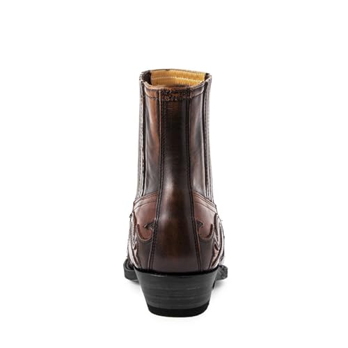 ByErz Men's Western Boots Slip on Pointy Strap Embroidery Fashion Boots Cowboy Low Pipe 5