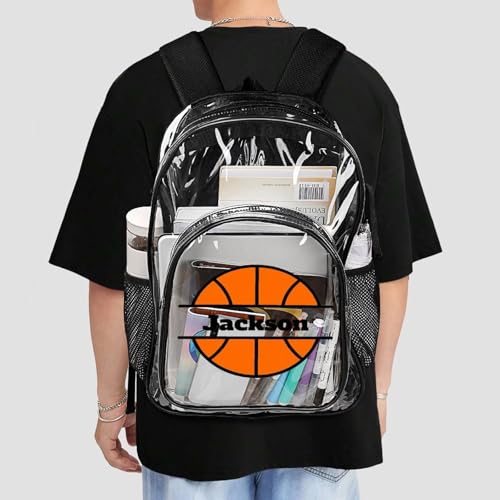 popular ! Personalized Basketball Black Clear Backpack with Name PVC See Through Transparent Backpack with Reinforced Strap & Large Capacity School Workplace, Back to School Gifts for Boys Girls Kids