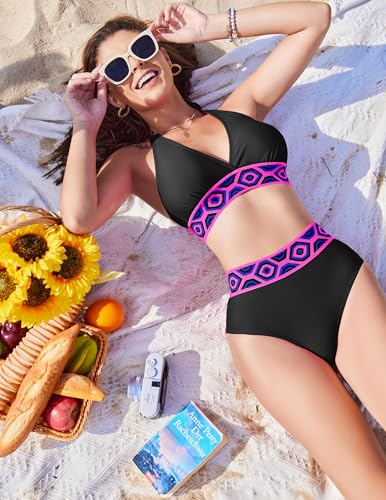 • 【High Waisted Swimwear】The high waist bikini bottoms provide ample coverage, and the knit seam design offers only the right amount of tummy control without feeling restrictive