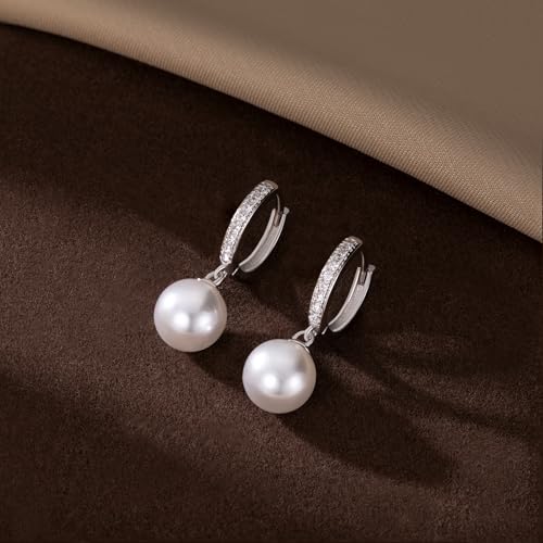 SLUYNZ Solid 925 Sterling Silver Pearls Hoop Earrings for Women Teens Wedding Pearls Earrings Hoop Earrings Huggie 5