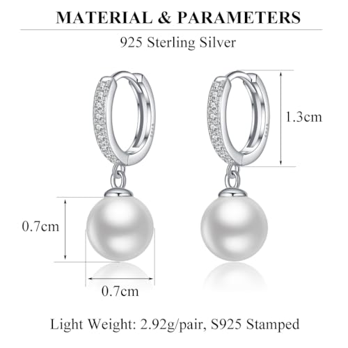 • PRODUCT PARAMETERS: The hoop sizes: 1.3cm/0.5in, the pearl: 0.7cm/0.27in, the whole earrings weight is 2.92g/pair, these hoop earrings whole come with silver clean cloth in a pretty gift box stamped SLUYNZ.