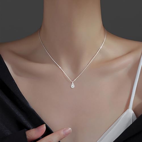 popular ! SLUYNZ 925 Sterling Silver CZ Teardrop Choker Necklace for Women Teens CZ Waterdrop Pendant Necklace