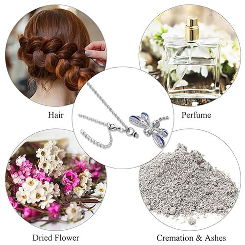 Material: Stainless SteelMetal type: Stainless SteelClasp type: LobsterChain type: CableGem type: Base【Design Concept】-Dragonfly Urn Necklace carries profound symbolism, seamlessly merging the dragonfly's grace with the cherished memories of our lives. The dragonfly, a symbol of happiness and transformation, is delicately portrayed through intricate cutout patterns in the pendant. Wearing this cremation jewelry, you'll feel the convergence of past and present, as it guides you through the path of remembrance and offers enduring strength and solace.【Size】-Butterfly Urn pendant size is 1.19L*1.42H,Urn Pendant Weight:8.1g.Each Urn Necklace come with 20”+2” extension chain +Gift Card+Funnel.【Material】-Dargonfly Cremation Jewelry made of stainless steel, special wing heart urn design and exquisite craftsmanship, resilient,waterproof, elegant and fashionable, makes you more attractive.【Application】-Animal Cremation Urn Necklace allowing you to hold a small amount human pet ashes;family,friends or dog, cat fur,hair,nail,dried flowers, Hand crafted Urn Necklaces for Ashes for Women Men, Cremation Jewelry for Ashes,Cremation Necklace for Ashes to keep you loved one close to your heart.【Ideal Gift】-This Animal Ash Holder Necklace for women, girls, fathers, mothers, grandmothers, grandfathers, sisters, sons, wives, daughters, husbands, brothers, friends or other family members. to remember a special someone and keep them close to heart at all times. Perfect for everyday use. first-class materials and excellent craftsmanship ensure long-lasting durability.