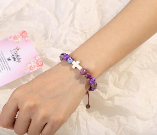 6th/7th/8th/9th/10th/11th/12th/13th/Girls Birthday Gift Cross Natural Stone Bracelet, for Daughter Granddaughter Friend Niece Teenage Girl Beaded Fashion Bracelet 3